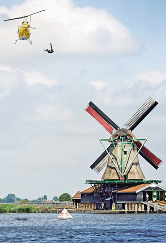 10米臺?還是3米板?跳水一定要站在固定的地方往下跳嗎?哥倫比亞選手奧蘭多·杜克日前就從飛翔在30米高空的直升飛機上縱身跳下……轉(zhuǎn)體、空翻、抱膝一系列動作做得絲絲入扣,并不比奧運冠軍田亮遜色多少。