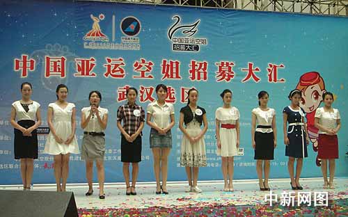 中新網(wǎng)武漢7月10日電 (徐金波 孫紅良 沈蕾)廣州亞運(yùn)會組委會官方合作伙伴中國南方航空公司組織舉辦的“中國亞運(yùn)空姐招募大匯”全國第一站,10日在武漢展開海選活動(dòng),當(dāng)天8000多名佳麗從武漢三鎮(zhèn)趕來,競選該選區(qū)的80個(gè)亞運(yùn)空姐名額。