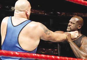 當杰里科叫上體重達到226公斤的WWE冠軍成員“表演者”(保羅·懷特)時,奧尼爾叫他“胖男孩”并向他挑戰(zhàn)。“表演者”拒絕了跟他比賽,“我撞翻你后,又得去撞翻勒布朗·詹姆斯,我可不想大衛(wèi)·斯特恩和整個NBA都來追殺我!