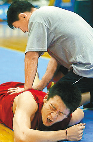 可惜樂極生悲,在一次投籃后,孫悅突然捂著大腿倒下,齜牙咧嘴看起來很痛苦,診斷結(jié)果是因為用力過猛,導(dǎo)致臀部抽筋。其實,與其說用力過猛,還不如說“秀”過了頭。