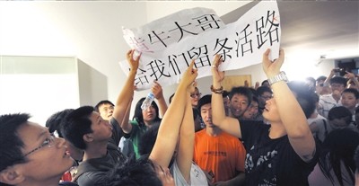 昨天上午10點(diǎn)多,300余名球迷涌入工體國安足球俱樂部,抗議在苦等數(shù)小時(shí)后仍買不到本月30日國安與魯能比賽的門票,指稱售票窗口與“黃!惫唇Y(jié),使得大量門票落入“黃!笔种小W罱K,為安撫球迷們的情緒,國安俱樂部破例追加售票。 >>現(xiàn)場球迷擠破暖氣片