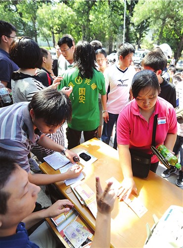 據(jù)球迷王先生介紹,他想要購買的是本月30日國安對(duì)陣魯能的比賽門票。“關(guān)系到國安今年能否在中超奪冠,作為十幾年的國安球迷,這場比賽我們必須去見證!睘橘I到門票,王先生昨天早上5點(diǎn)就到工體北門守候。當(dāng)時(shí)排在他前面的人只有5個(gè),按照當(dāng)天該售票點(diǎn)發(fā)售500張票、每位球迷限買兩張票的情況,他覺得無論如何都能買上票。
