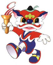 會徽:會徽中間豐滿,兩端漸細(xì)的曲線給人無限的延伸感,配合傾斜的線條,更顯奔騰飛躍之意。對比鮮明的紅、黃、藍(lán)三色,對視覺有強烈的沖擊力。造型灑脫地色勒出一個“9”,既直接傳達了九運會的信息,又宛如一位矯健、充滿活力、奮發(fā)向上的運動員,豪邁跨入新世紀(jì)。