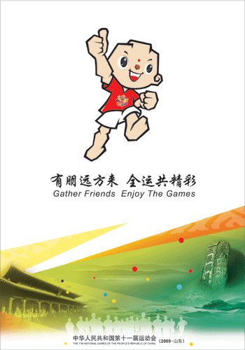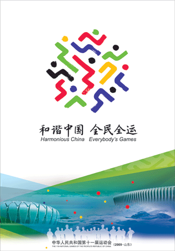 會(huì)徽形象宣傳畫(huà)下方畫(huà)面中表現(xiàn)了主會(huì)場(chǎng)的代表性建筑——“東荷西柳”的整體造型,并與大海的形態(tài)融為一體,通透疊加的顏色使用、最前方奔跑的人群,體現(xiàn)出此次運(yùn)動(dòng)會(huì)“和諧中國(guó),全民全運(yùn)”的主題。吉祥物形象宣傳畫(huà)的下方是孔廟和泰山的形象,與上方的泰山童子一起,準(zhǔn)確傳達(dá)出山東的地域特色,同時(shí)還體現(xiàn)了山東好客、熱情、誠(chéng)邀四方嘉賓的氛圍。主宣傳畫(huà)著力表現(xiàn)會(huì)徽與吉祥物,其形式與十一運(yùn)會(huì)整體視覺(jué)形象相一致。