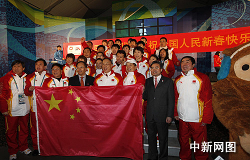 中新網(wǎng)溫哥華2月10日電 (記者 夏宇華 賴海隆)中國(guó)冬奧代表團(tuán)今天在雨中舉行了升旗儀式,正式成為本屆冬奧會(huì)大家庭成員。升旗儀式后,中國(guó)代表團(tuán)團(tuán)長(zhǎng)劉鵬帶領(lǐng)代表團(tuán)成員展開(kāi)橫幅高聲向全體國(guó)人送上新春祝福。