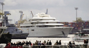 切爾西老板阿布拉莫維奇花巨資打造的世界最大私人游艇“日蝕”號(hào)正式下水,明年“超級(jí)球迷”阿布將乘著它前往南非觀看世界杯。長(zhǎng)度達(dá)159米的“日蝕”號(hào)全副武裝,“它永遠(yuǎn)不可能被任何武器擊沉,即便碰到兇悍的索馬里海盜也不在話下”,建造它的專家宣稱。