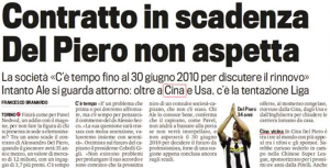 皮耶羅與尤文圖斯的合同到2010年6月30日到期,續(xù)約尤文圖斯固然好,但如果待遇方面不能得到滿足,那么也不排除皮耶羅尋找其他球隊(duì)養(yǎng)老的可能性。據(jù)《米蘭體育報(bào)》所說,包括中國、美國和西班牙的球隊(duì)都嘗試接觸皮耶羅,特別需要指出的是來自中超球隊(duì)的邀請(qǐng)。小新