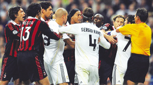 盡管皇馬2:3主場(chǎng)不敵AC米蘭,賽前成為焦點(diǎn)的米蘭舊將卡卡也表現(xiàn)不佳,但皇馬隊(duì)長(zhǎng)勞爾的表現(xiàn)卻可圈可點(diǎn):助攻隊(duì)友德倫特攻入一球,而且在比賽中還破門首開紀(jì)錄,憑借此球勞爾的個(gè)人歐冠進(jìn)球數(shù)為66球,占據(jù)歐冠歷史個(gè)人射手榜榜首。然而,就是這位球技、職業(yè)素養(yǎng)、人品都還不錯(cuò)的32歲老將,卻成為兩隊(duì)此戰(zhàn)爆發(fā)肢體沖突的主角。