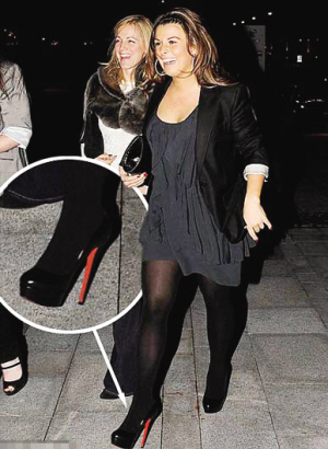 當(dāng)晚,科琳選擇了最具收斂效果的黑色連衣裙,就連設(shè)計(jì)也是突出遮擋功能的散身款。擺脫了便便大腹之后總算又能名正言順穿回了酷愛的高跟鞋,這一次科琳選擇了頂級(jí)鞋履品牌克里斯提·魯布托的設(shè)計(jì),值得一提的是,這雙6英寸的高跟鞋造價(jià)至少500英鎊。