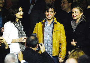 眾所周知,好萊塢大牌影星湯姆·克魯斯因為與貝克漢姆夫婦是密友,因此受到小貝的影響,阿湯哥對足球也有一定興趣。在昨天的歐冠比賽中,阿湯哥“叛變”了皇馬與米蘭,轉(zhuǎn)而來到現(xiàn)場為西甲勁旅塞維利亞吶喊助威。這一次,阿湯哥捧場的是塞維利亞主場與蘇超格拉斯哥流浪者的比賽,F(xiàn)場觀戰(zhàn)歐冠,阿湯哥的排場也很大,身邊伴隨了兩位大牌美女,一是他的嬌妻凱蒂·赫爾姆斯,另一位則是好萊塢著名美女影星、阿湯哥的好友卡梅隆·迪亞茲。