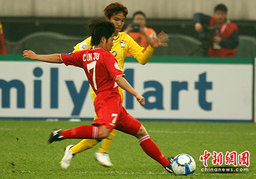中新網(wǎng)成都5月20日電(記者劉忠俊 劉賢 楊杰)2010年女足亞洲杯A組比賽拉開戰(zhàn)幕,亞洲勁旅朝鮮女足迎戰(zhàn)泰國女足。開場4分鐘朝鮮隊連進(jìn)2球,下半場再進(jìn)一球,以3:0大勝泰國隊。