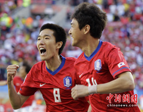 中新網6月12日電 北京時間19點30分,南非世界杯B組小組賽拉開戰(zhàn)幕,由“太極虎”韓國隊迎戰(zhàn)歐洲勁旅希臘隊。第7分鐘韓國隊由李正秀先拔頭籌,下半場開場后樸智星利用對方后衛(wèi)的一次失誤將全場比分鎖定為2-0。