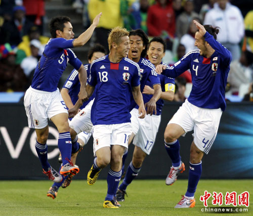 中新網(wǎng)6月14日電 北京時間22點整,南非世界杯E組日本與喀麥隆隊的比賽打響,雙方在布隆方丹的自由州球場展開爭奪。最終經(jīng)過90分鐘激戰(zhàn),日本隊憑借本田圭佑的進球1-0擊敗喀麥隆,在小組出線之路上占得先機。
