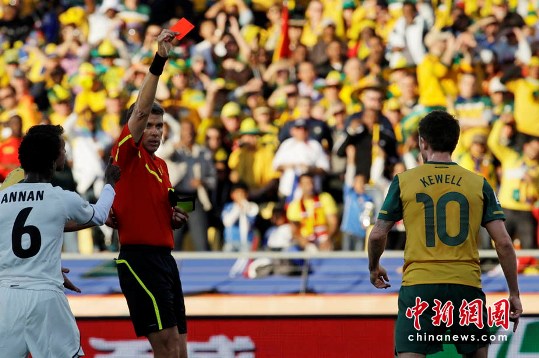 但優(yōu)勢(shì)未能保持太久,第23分鐘加納隊(duì)阿尤禁區(qū)右側(cè)底線傳中,無人看防的蒙薩后點(diǎn)右腳勁射,皮球打在防守的科威爾右臂彈出,意大利主裁羅塞蒂認(rèn)為這是科威爾手球,向他出示紅牌并判罰點(diǎn)球,科威爾被迫以這樣無奈的方式離場(chǎng)。