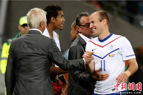 中新網(wǎng)6月25日電 在今天凌晨進(jìn)行的一場(chǎng)世界杯小組賽中,已經(jīng)提前出線的荷蘭隊(duì)在開(kāi)普敦綠點(diǎn)球場(chǎng)迎戰(zhàn)提前出局的喀麥隆。最終憑借范佩西和亨特拉爾的進(jìn)球,荷蘭隊(duì)以2-1擊敗喀麥隆,小組賽三戰(zhàn)全勝以小組頭名晉級(jí)。