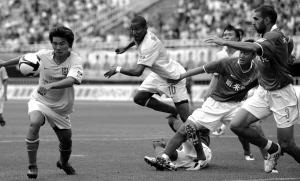 綠城昨天的確打了陜西一個措手不及,下半場出場時,陜西前鋒李毅“大帝”(9號)居然穿了條8號(李彥)的褲子。再來看看李彥,他穿的是李毅的9號球衣。發(fā)現(xiàn)這一紕漏后,主裁判馬上中止比賽,讓兩人進行“現(xiàn)場換衣秀”。換件衣服還沒什么,可憐的李毅還得跑到角落去換球褲,這一場景讓場上的球員都樂壞了。