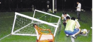 3日下午,位于武漢市漢口江灘三期的足球場上發(fā)生一起慘。阂蝗鹤闱蛎哉谔咔驎r,活動球門倒下砸在守門員頭上。該守門員被迅速送往醫(yī)院,但因傷勢過重搶救無效,不幸死亡。而據(jù)記者調(diào)查,同類球門砸死砸傷人的事件在全國也并非少數(shù),而多數(shù)悲劇的發(fā)生是因為球門質(zhì)量不過關(guān)造成的。