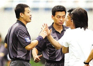 第17輪中超最后的兩場角逐昨天進行,北京國安主場以3:0戰(zhàn)勝長沙金德,陜西中新浐灞隊在主場1:2不敵山東魯能隊。陜西中新隊成耀東賽后情緒有些難以控制,他非常憤怒地暗指了對裁判的不滿。