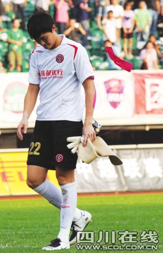 這場令人矚目的“成渝德比”對于雙方來說都至關重要,勝負將直接關系到兩隊的降級形勢。因此盡管是國慶大假期間,仍有1萬多名球迷涌進成體。開場后第25分鐘,成足守門員蘭一在大禁區(qū)線外居然出現(xiàn)了停球失誤,反被金尼搶斷把球打入空門!0:1,成都建工地產(chǎn)隊率先送上“大禮”。如此低級的失誤點燃了球迷的怒火。而這僅僅是開始,第48分鐘,意外的一幕似乎又重演了,重慶隊威脅并不大的射門將蘭一擋出,又是金尼在禁區(qū)里把握住機會補射得分,2:0,重慶力帆將比分擴大了。值得注意的是,兩個丟球都和守門員蘭一有直接關系,這樣的表現(xiàn)也讓現(xiàn)場球迷非常不滿,成體開始響起“假球”的吼聲……
