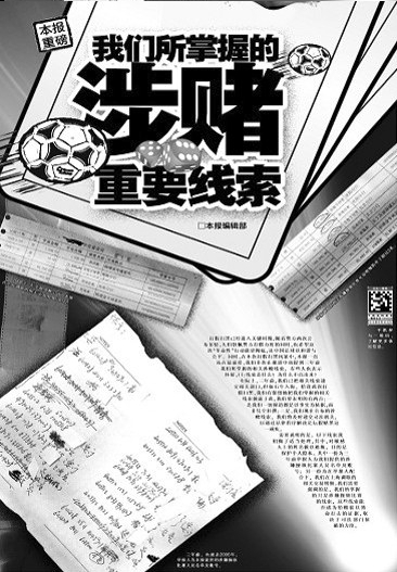 這份線索《遼沈晚報(bào)》掌握了3年,為何選擇在此時(shí)公諸于眾?對(duì)此,郝洪軍說:“3年前,我們3個(gè)記者把這份證據(jù)交給了足協(xié),謝亞龍、南勇、楊一民進(jìn)行了接待。也就在2006年初,足協(xié)與公安部聯(lián)手成立打擊賭球活動(dòng)辦公室。對(duì)我們媒體來說,畢竟不是司法機(jī)關(guān),這些線索不能叫證據(jù),交出去(給打擊賭球活動(dòng)辦公室),是正規(guī)的渠道。但是后來沒有了動(dòng)靜!