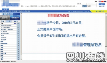 在另外一家博彩網(wǎng)站,同樣是存款界面,中國(guó)國(guó)內(nèi)借記卡的一欄已經(jīng)成了空白,付款只能通過(guò)點(diǎn)擊國(guó)外信用卡才可以進(jìn)行,包括國(guó)內(nèi)雙幣信用卡也不能使用。此外,還有一家網(wǎng)站竟然掛出了公告,于“2010年3月31日正式撤離中國(guó)內(nèi)地”。