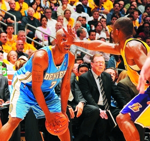 火箭雖然已經出局,但巴蒂爾防守科比的遮臉絕技讓球迷津津樂道。對陣湖人,巴蒂爾的主要任務就是防守科比,在對抗中,不管科比是多么難以阻擋,巴蒂爾始終遵循著“一只手蓋在臉上”的防守法則。7場西部半決賽打下來,科比一定已經記清了巴蒂爾掌心的每條紋路。伸手擋臉看似簡單,其實是個技術活,難就難在如何不碰到對手的臉。也許是受到巴蒂爾的啟發(fā),科比昨天在防守掘金后衛(wèi)比盧普斯時也用了遮臉這招,但科比的原地“發(fā)功”技術含量和巴蒂爾比起來還是遜色不少。巴蒂爾的做法是在快要發(fā)生身體接觸那一刻在空中轉體,右腿側伸,身體跟科比的身體略略交錯,從而保持手掌與對方面龐的距離,隨著對手投球完畢,巴蒂爾的手掌便收縮回來。這種動作難度很高,但效果不錯,不僅能擋住對手的投球路線,也能分散對方的注意力。