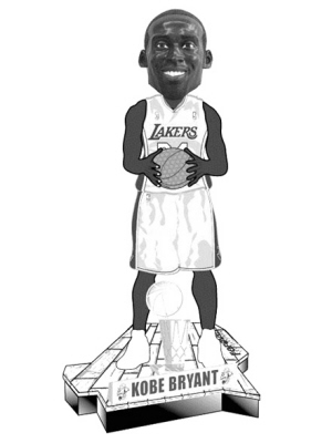 “如果你在為不知道送一個湖人球迷什么禮物而煩惱,別想了,一個身高1米98的‘科比’怎么樣?”這樣的廣告語對任何一個湖人球迷都太有誘惑力了,而且這不是虛假廣告,湖人官網(wǎng)的網(wǎng)上商店正在發(fā)售——史上最大的搖頭娃娃紀念品,和真實的科比一樣高的搖頭娃娃。