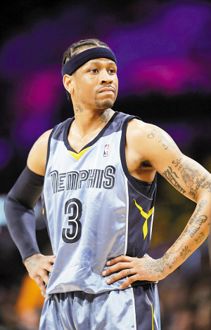 然而,這場比賽注定是答案的悲情演出。昔日的得分王只是在第二節(jié)投中2球。全場出場21分鐘,答案只有可憐的5次出手機會。在灰熊,無限開火權(quán)屬于梅奧、蓋伊等新人,這里依然不是他的答案。第三節(jié),科比用一次漂亮的上籃完成24000分時,電視鏡頭馬上切換到板凳上的艾弗森臉上,答案眼里盡是迷茫。