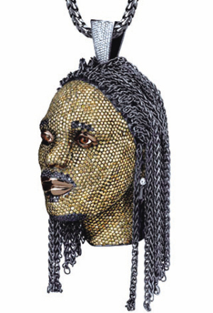這是一個(gè)用純金和鉆石堆砌出來的奢侈品,完全按照丹尼爾斯的真人輪廓打造。美國媒體披露了這個(gè)頭像的制作過程。制作人員先把丹尼爾斯的素描輸入電腦,然后進(jìn)行比例分析,之后開始制作。先用模板澆鑄出純金的頭像,然后把鉆石鑲嵌上去。