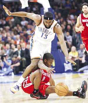 在剛剛加盟火箭隊的06-07賽季,“暴力扣將”斯威夫特有一天在家里休息,飛來一只蒼蠅飛到他的眼睛上,他用粗大的手指去揉眼睛,結(jié)果給揉出了結(jié)膜炎被迫缺席了9場比賽,據(jù)說用手指揉眼睛發(fā)生結(jié)膜炎的概率是百萬分之一。