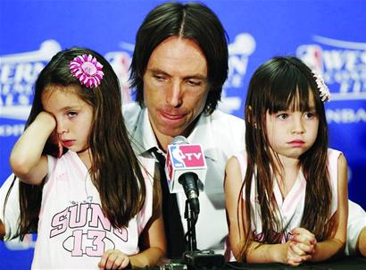 在賽后的發(fā)布會上,納什兩個可愛的女兒也出現(xiàn)在了現(xiàn)場,聽到爸爸的一番辛酸言論,兩個女兒當(dāng)場落淚,而看到女兒落淚,納什再也控制不住自己的情緒,流下了兩行悲壯的英雄淚。(金鑫)