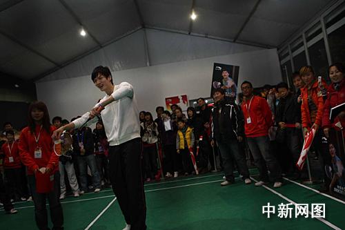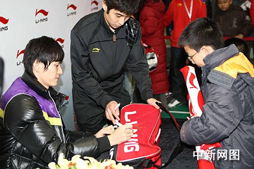 中新網(wǎng)上海十一月二十三日點(diǎn)(宗晨亮)日前,中國羽毛球名將鮑春來來到“2009李寧・中國羽毛球公開賽”球迷體驗(yàn)區(qū),和球迷們進(jìn)行了互動(dòng)活動(dòng),還為大家簽名留念。有意思的是,小鮑的球迷多數(shù)都是女性,主持人也拿此事和他開玩笑。