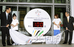 中新網(wǎng)6月25日電 據(jù)共同社報(bào)道,昨天距2016年夏季奧運(yùn)會(huì)主辦城市揭曉還有100天,東京奧申委在東京國(guó)際論壇中心設(shè)置了一座顯示剩余天數(shù)的倒計(jì)時(shí)鐘。