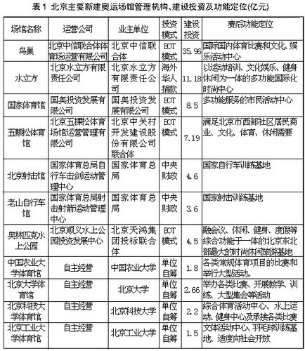 隨著現(xiàn)代奧運會規(guī)模的不斷膨脹,奧運場館的建設(shè)規(guī)格也不斷提升。奧運會結(jié)束以后奧運場館能否得到有效利用與開發(fā),已經(jīng)成為一個世界性難題,成為衡量一屆奧運會是否成功的一個重要標(biāo)志。為了推動北京奧運場館賽后開發(fā)與利用工作,早在2007年,北京體育大學(xué)管理學(xué)院就聯(lián)合相關(guān)機構(gòu)申請了國家自然科學(xué)基金項目《2008年北京奧運會場館賽后開發(fā)與利用研究》,圍繞北京奧運場館賽后開發(fā)工作,進行了系統(tǒng)的調(diào)查研究。以此為基礎(chǔ),本文對北京奧運會結(jié)束一年來場館的開發(fā)與利用情況進行了總結(jié)分析,就進一步做好這一工作提出了建議。