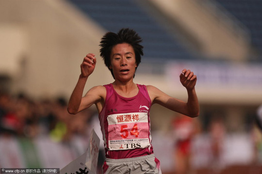由于本次北京國際馬拉松賽同時(shí)也是全運(yùn)會(huì)馬拉松的比賽,所以第一位沖過終點(diǎn)線的中國選手、來自內(nèi)蒙古的小將韓剛就獲得了全運(yùn)會(huì)男子馬拉松的金牌,這也是內(nèi)蒙古的首枚全運(yùn)田徑金牌。