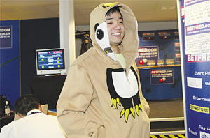 與比賽時西裝革履相比,昨天的丁俊暉更加多了一分童真。簡單的牛仔褲,運(yùn)動鞋,外加一件黃色熊貓頭外套,讓23歲的小暉看起來活力十足。面對記者,丁俊暉還被朋友們打趣把衣服拉索拉到了頭,蒙著頭的小暉被裹在衣服里面,掙扎的動作引來一片笑聲。