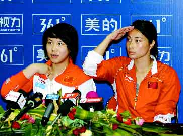 當郭晶晶與搭檔王涵拿到女子雙人三米板金牌之后,現(xiàn)場頓時沸騰了。觀眾為郭晶晶的精彩表演而吶喊,記者則開始在新聞發(fā)布會通道搶占地盤,幾十位記者猶如“從天而降”一般堵住了前往新聞發(fā)布會的必經(jīng)通道。在場的武警見勢不妙,立即開始疏散,這時一位從場內(nèi)出來的武警向新聞發(fā)布會通道外的武警喊道,“快,快,擋出一條路,讓她過去!