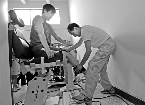 為了讓劉翔更好更快更均衡地恢復,孫海平費盡了心思。他昨天透露了他想出的幾個絕招,“從來沒有人使用過的!币皇菢鋬蓧K板,讓劉翔兩腳在上邊畫圈、點擊,這既可以讓劉翔傷腳得到力量和靈活性鍛煉,又可以讓雙腳更協(xié)調;另一招是劉翔前些日子出現(xiàn)了單腳平衡性不好后想出來的,是讓劉翔站在沙坑里練單腳站立。