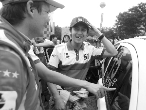韓寒的支持者顯得更加有組織性,在昨天的發(fā)車現(xiàn)場(chǎng),記者甚至看到了幾位打著“南京寒迷會(huì)”橫幅的帥哥美女,不過韓寒似乎有點(diǎn)不太“合作”,直到發(fā)車儀式即將開始的時(shí)候,才出現(xiàn)在自己的賽車旁,這讓現(xiàn)場(chǎng)的韓迷頗有些失望。