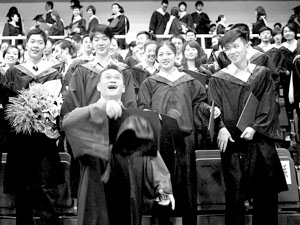 “最近幾年,我碩士班畢業(yè)推遲,留學(xué)放棄,生孩子計(jì)劃推遲,都是為了2008年奧運(yùn)會(huì),可惜也沒參加上。”回憶起近幾年的奮斗史,老張感慨頗多,“不過(guò)今天參加畢業(yè)典禮還是很幸福,也很滿足。”