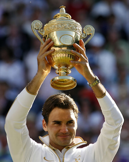 中新網(wǎng)7月6日電 今天凌晨,2009年溫布爾登網(wǎng)球公開賽的壓軸大戲——男單冠軍爭奪戰(zhàn)終于落幕,天王費德勒與羅迪克苦戰(zhàn)四個多小時,最終瑞士人以3比2險勝,五局比分為5比7、7比6、7比6、3比6、16比14,同時費德勒也以15座大滿貫單打冠軍的紀錄超越桑普拉斯,成為網(wǎng)球史上最偉大的一位冠軍。