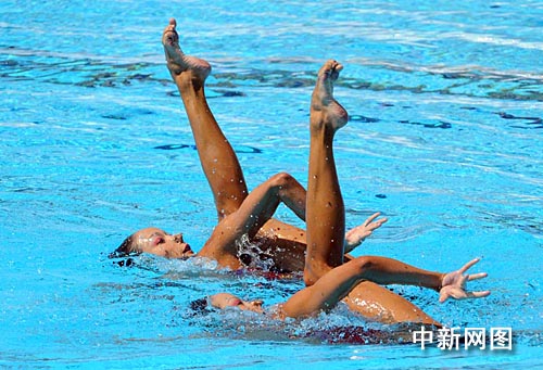 中新網(wǎng)羅馬七月二十一日電 (記者 宋方燦)“世界上最美的腿”二十一日在游泳世錦賽花樣游泳賽場上大放異彩。蔣文文/蔣婷婷這對雙胞胎姐妹在雙人技術(shù)自選的比賽中里表現(xiàn)出色,雖然遭遇個別裁判的低分“照顧”,但仍輕取一枚銅牌。俄羅斯組合奪得金牌,西班牙選手繼續(xù)名列第二。