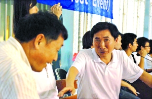 “你們采訪他(金潤(rùn)東),他是主教練!苯痍撇χf,將自己的學(xué)生介紹給記者,對(duì)于老金來說是一件開心的事情。而金潤(rùn)東在老金面前,依然像當(dāng)年當(dāng)學(xué)生一樣謹(jǐn)慎誠(chéng)懇。由于一直在韓國(guó)國(guó)內(nèi)效力、執(zhí)教,金潤(rùn)東的英語和漢語都不靈光,憨厚的他首先想到的是讓隔壁的老師“救火”充當(dāng)翻譯。
