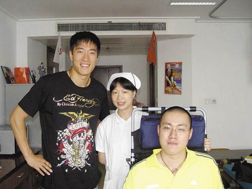 多方打聽了解到的情況是,本周四,劉翔穿著黑色T恤,頭戴鴨舌帽,悄悄進(jìn)入醫(yī)院。因?yàn)橥巧虾_\(yùn)動(dòng)員,又是老朋友,劉翔和湯淼聊得很開心。劉翔先仔細(xì)了解了湯淼的康復(fù)情況,鼓勵(lì)他積極配合醫(yī)生治療,以爭(zhēng)取好的結(jié)果。劉翔此行相當(dāng)?shù)驼{(diào),只在病房呆了十分鐘就匆匆離去,不過(guò)走之前,他還是滿足了湯淼的主治醫(yī)師、護(hù)士合影留念的要求。