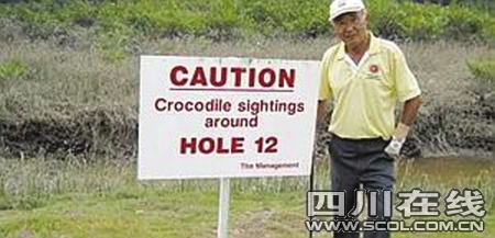這個(gè)倒霉的老人名叫詹姆斯·威塞克,他在這個(gè)高爾夫球場第12洞打球時(shí),不幸被草叢里竄出的一只鱷魚咬傷。雖然當(dāng)即被送往了醫(yī)院,但醫(yī)生最終也未能保住詹姆斯的胳膊,不得不為他實(shí)施了截肢手術(shù)。