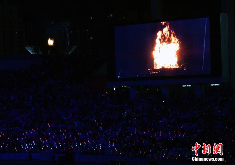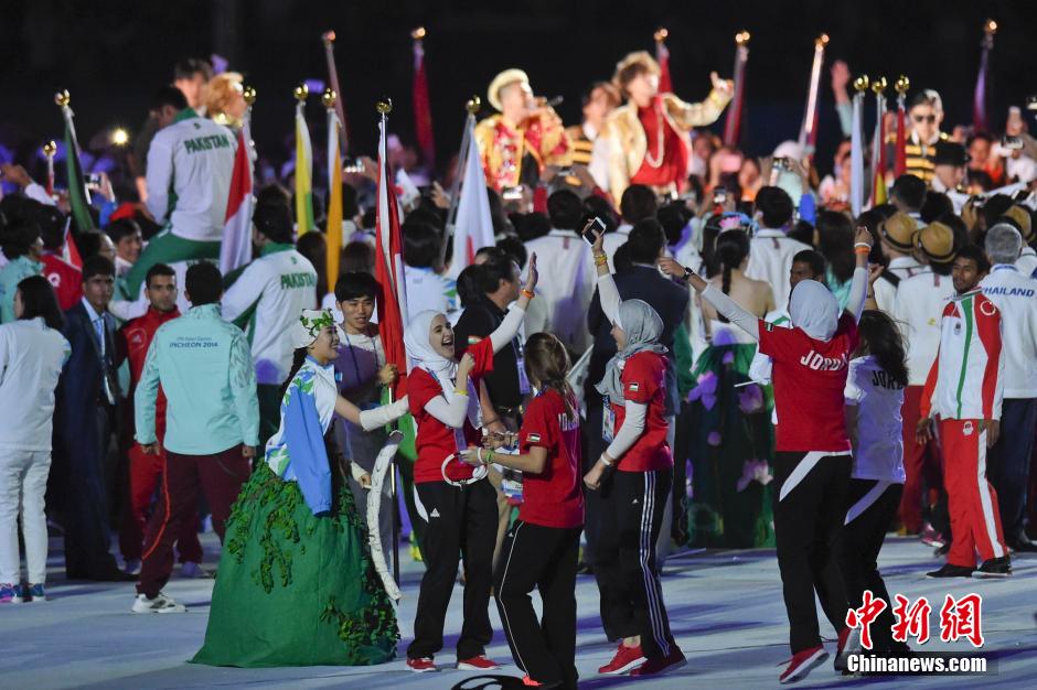4日晚,亞奧理事會主席艾哈邁德·法赫德·薩巴赫親王宣布第十七屆亞運會閉幕,燃燒了16天的亞運圣火在韓國仁川的主體育場熄滅。韓國總理鄭烘原和朝鮮高級代表團成員出席了當(dāng)晚的開幕式。