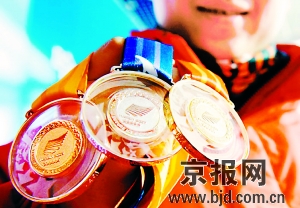 本屆大冬會獎牌水晶鑲金,取自中國古代歷史上著名的美玉——“和氏璧”的造型。金牌由象征著尊榮華貴的“黃金”與象征和諧純潔的“水晶”兩種材質(zhì)組合而成,以黃金體現(xiàn)出在冰雪競技運動中取得勝利的最高榮譽,以水晶體現(xiàn)出冰雪運動的特色以及公平、公正、公開的體育競爭價值觀。
