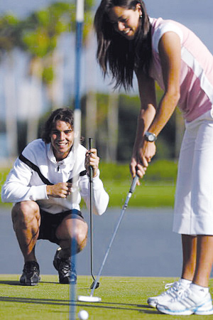 早在之前的匯豐冠軍賽上,納達(dá)爾就曾經(jīng)為老虎伍茲捧場(chǎng),而他自己也是位“敬業(yè)的高爾夫粉絲”,同時(shí)也是老虎伍茲的崇拜者。網(wǎng)壇美女伊萬(wàn)諾維奇更是不用說,最近剛剛和高爾夫萬(wàn)人迷斯科特爆出緋聞,和斯科特在海灘的清涼照片更是被多家媒體刊登,F(xiàn)在伊萬(wàn)諾維奇為了和斯科特有更多的話題也拿起了球桿開始學(xué)習(xí)高爾夫。