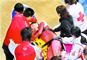 綜合《京華時報》、《今日早報》等報道,4日的全運會短道速滑賽場上出現(xiàn)了驚險一幕;在女子500米預賽中,新疆小將孔雪的脖子被冰刀劃傷,出現(xiàn)了一道6厘米長的傷口,一時血如泉涌。孔雪隨后被送往醫(yī)院縫合了14針。昨日,孔雪帶傷上陣,現(xiàn)場掌聲、加油聲此起彼伏。