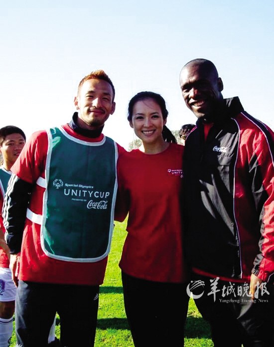 據(jù)悉,章子怡于2006年起擔任特奧會全球形象大使,至今已有4個年頭。這一次,特奧會舉辦的“團結(jié)杯”比賽旨在讓全社會接納和包容智障人士。章子怡說:“這次在世界杯期間受邀來到南非,主要是希望通過足球這項大家都熱愛的運動,讓更多人了解智障這個群體!绷硗猓吞貖W運動員一起參加比賽練習的還有“亞洲足球先生”中田英壽、NBA球星迪坎貝·穆托姆博、AC米蘭隊員克拉倫斯·西多夫等。在練習過程中,章子怡還跟中田英壽學習背后傳接球的動作,沒想到還一次成功,贏得了現(xiàn)場很多人的掌聲。